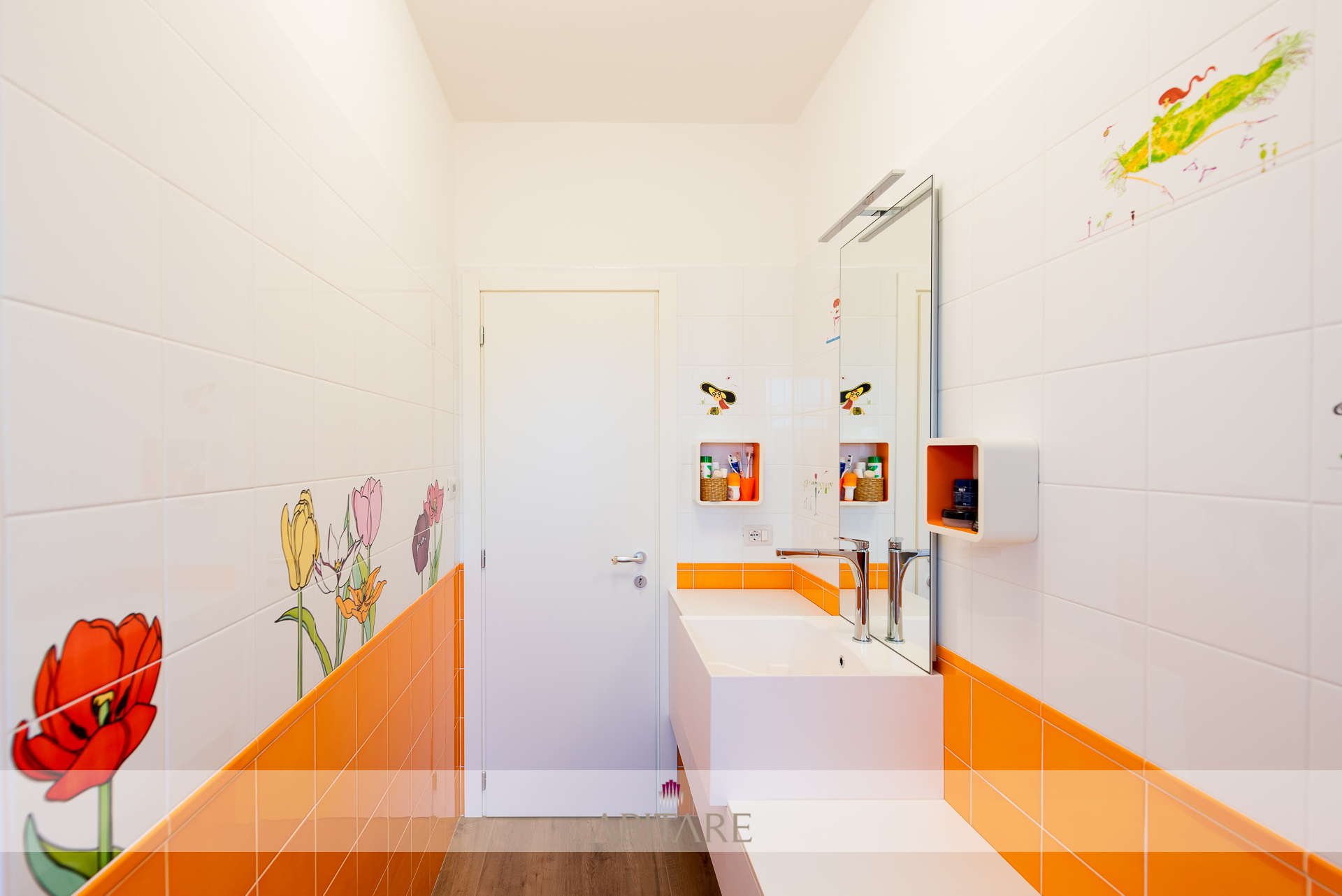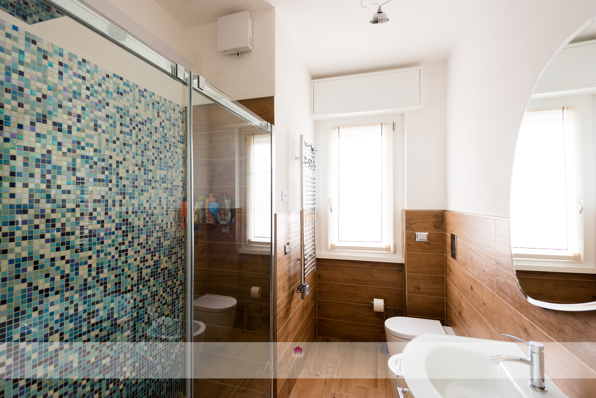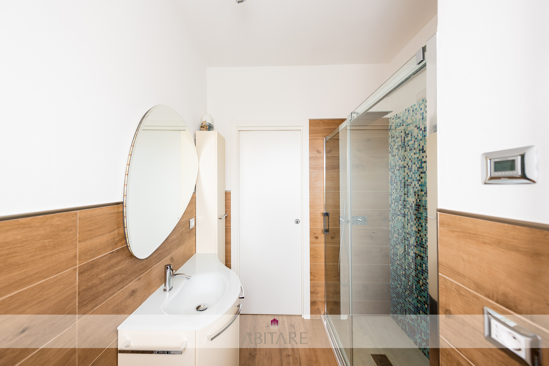 ▪️ I pavimenti sono rifiniti in gres porcellanato effetto legno ( Ceramiche Marazzi, rivestimenti bagno BARDELLI con inserti dipinti a mano per ogni singola piastrella)