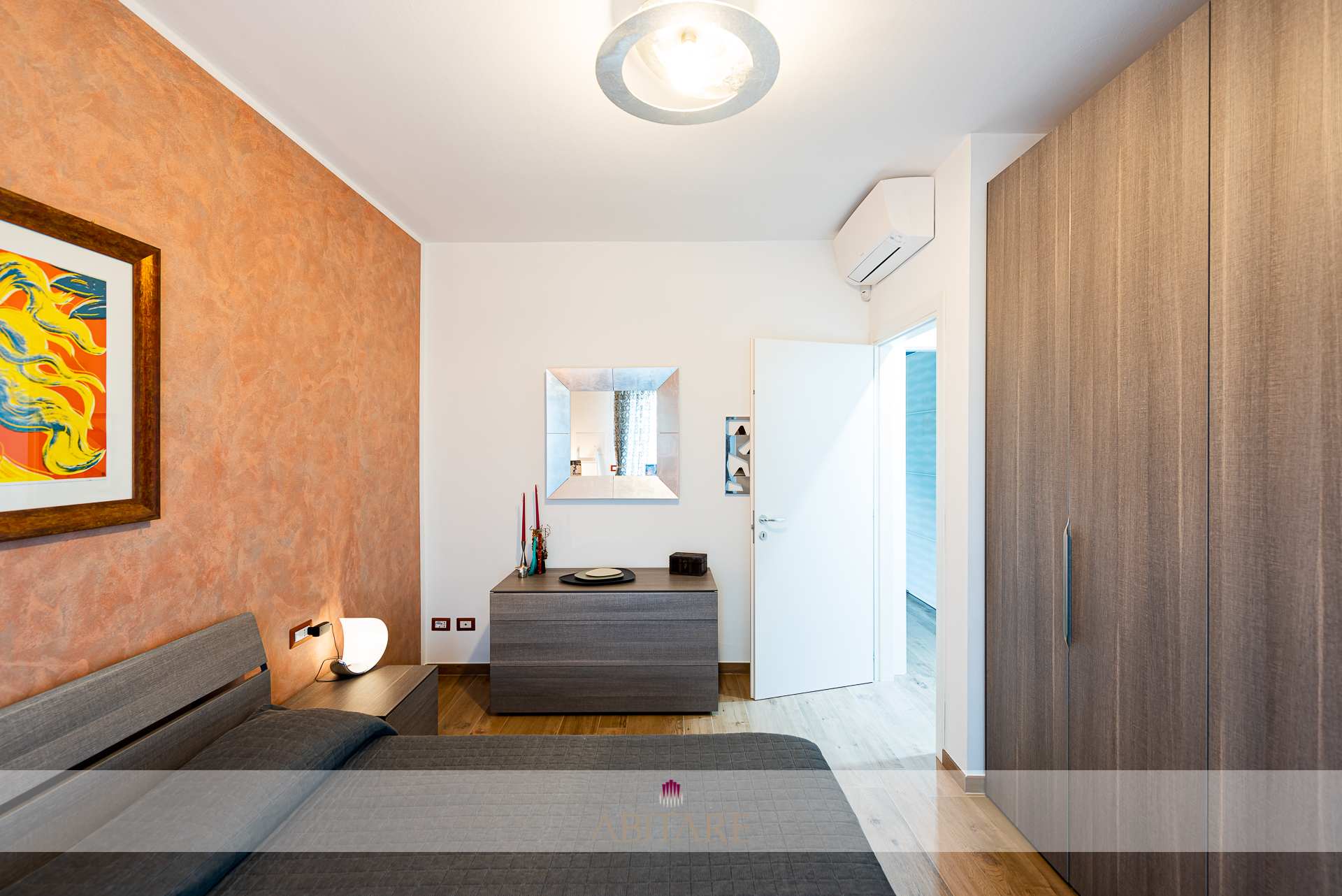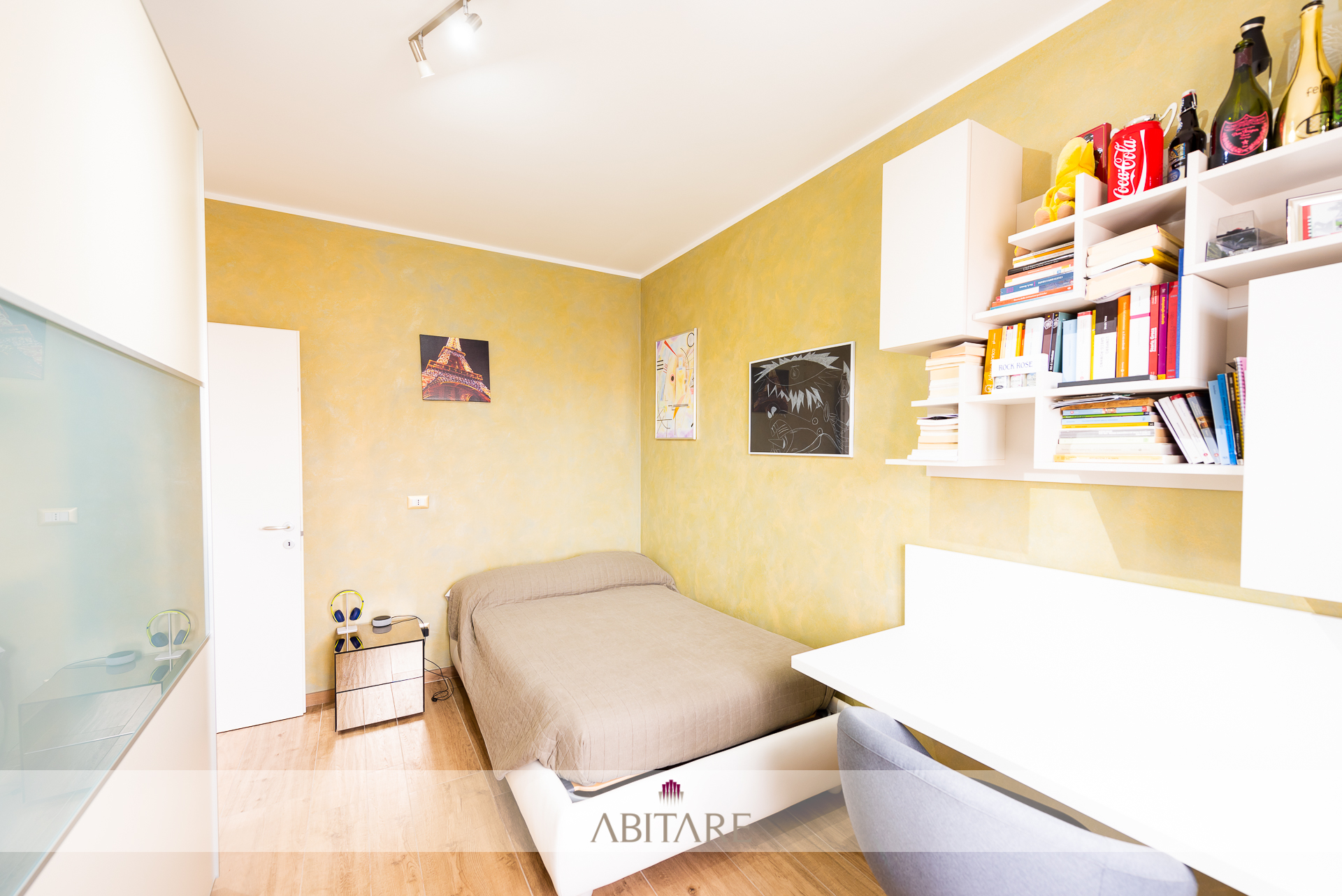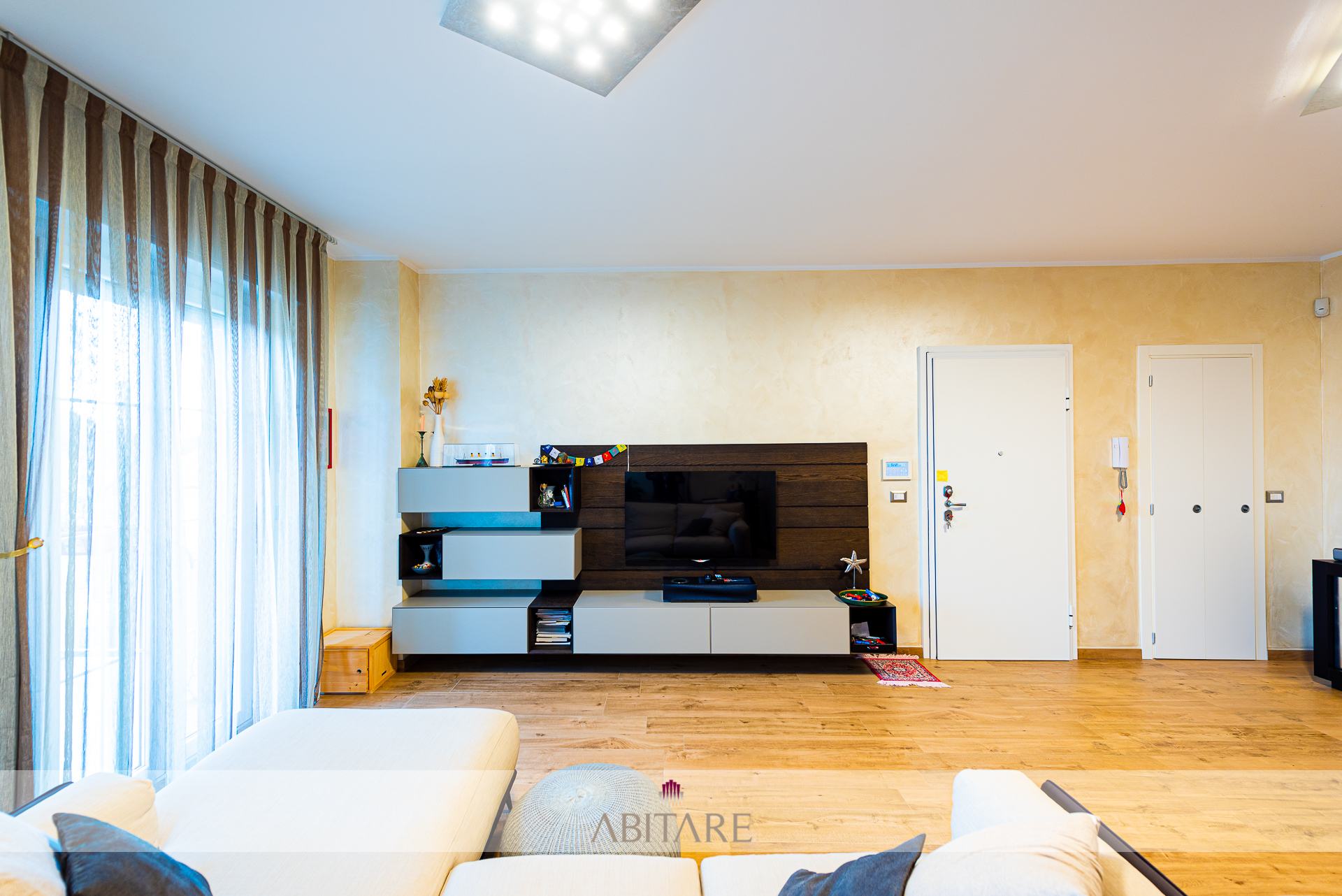 Ingresso, soggiorno di 37 mq. , cucina abitabile, camera da letto matrimoniale con accesso al balcone di servizio, ampio disimpegno, 2 camere singole, doppi servizi finestrati, ripostiglio e terrazzo di 32 mq.